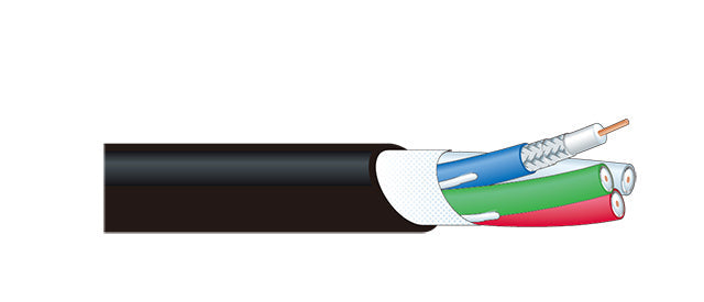 ・75Ω同軸マルチケーブル ・二重編組シールド ・移動用ケーブル ・4束同軸マルチケーブル1本で3G-SDI Quad Link 4K信号を伝送可能です。