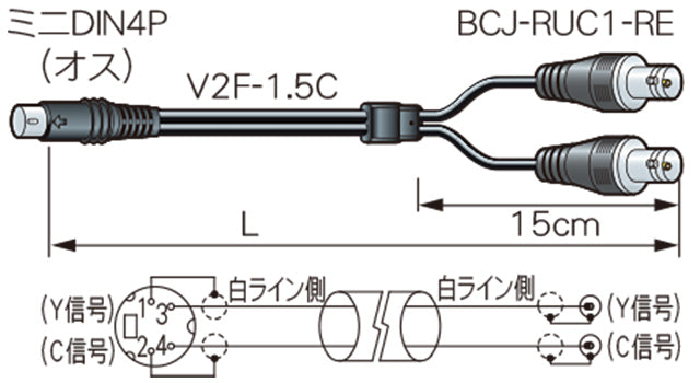 ・S端子ケーブル(S - BNC) ・ケーブル:V2F-1.5C ・コネクタ:ミニDIN4P(オス) - BCJ-RUC1-RE×2
