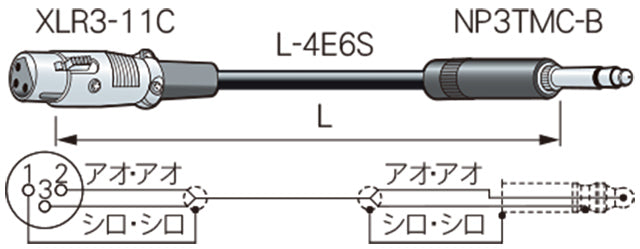・テレフォンケーブル(XLR3メス - テレフォン) ・ケーブル:L-4E6S ・コネクタ:XLR3-11C - NP3TMC-B