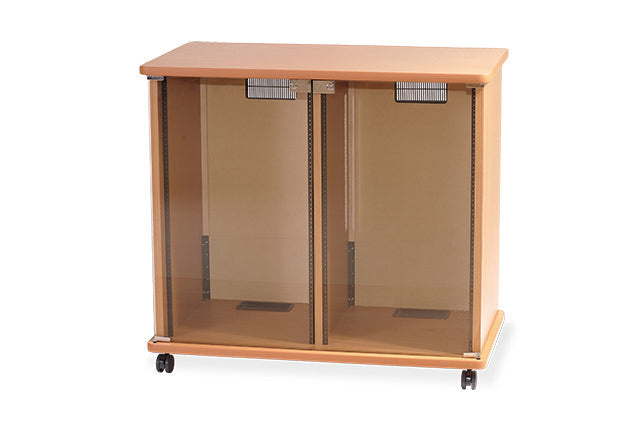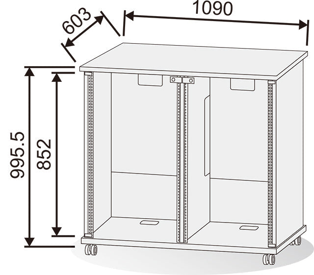・AVワゴン CWシリーズ ( 19U ×2 列 ) ・棚板下付けEIAピッチ ・底板スルーカバー配線孔 ・ナイロンΦ60キャスタ