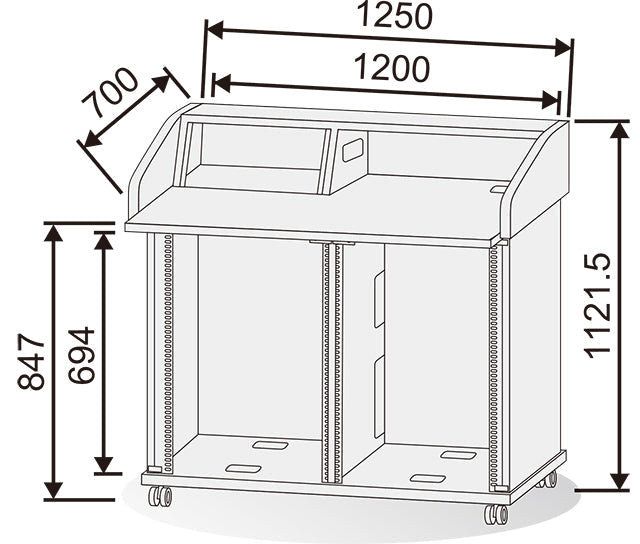 ・レクチャー卓 ( 15U +2列 、コンソール収納部 6U )