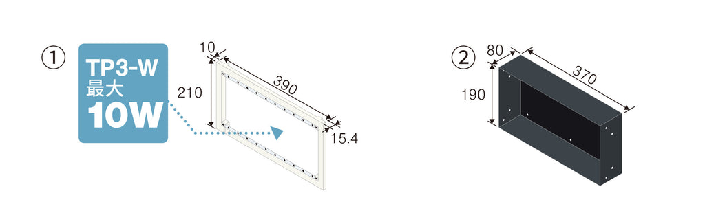 ・扉なし壁用端子盤フレーム(浅型) ・TP3-W プレート用 ・壁用端子盤プレート・アダプタプレート取付位置までの奥行き約8mmです。 ・裏ボックスは、背面パネル取り外し式 ・現場の状況に応じて配管配線用の穴加工が必要になります。
