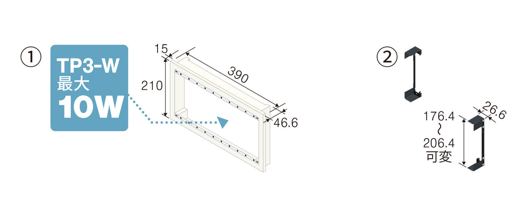 ・扉なし壁用端子盤フレーム ・TP3-Wプレート用 ・TP3-W最大10W
