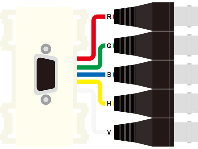 ・一般的なコンセント取付枠に対応したAVコンセント ・VGA-BNC(メスーメス)ケーブル 中継 ・ケーブル長 約130mm ・W43.5mm×H68.8mm