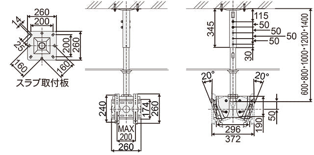 ・小型天吊ハンガー、19~32型(25㎏×2台まで) ・両面型 ・本体質量 16.7kg ・パイプセット長さ調整範囲:1400,1450,1500,1550 ・セット内容:壁掛金具、本体ベース、パイプ、スラブ取付板 ・ワンタッチロック機構