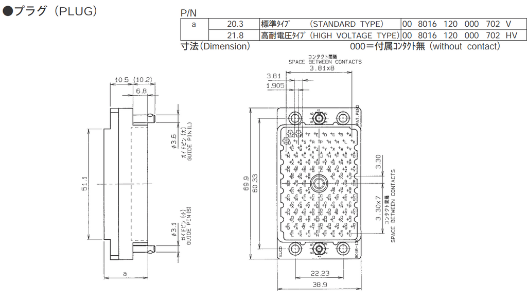 ・角型マルチコネクタ ・ナット付オス ・ピン数:120