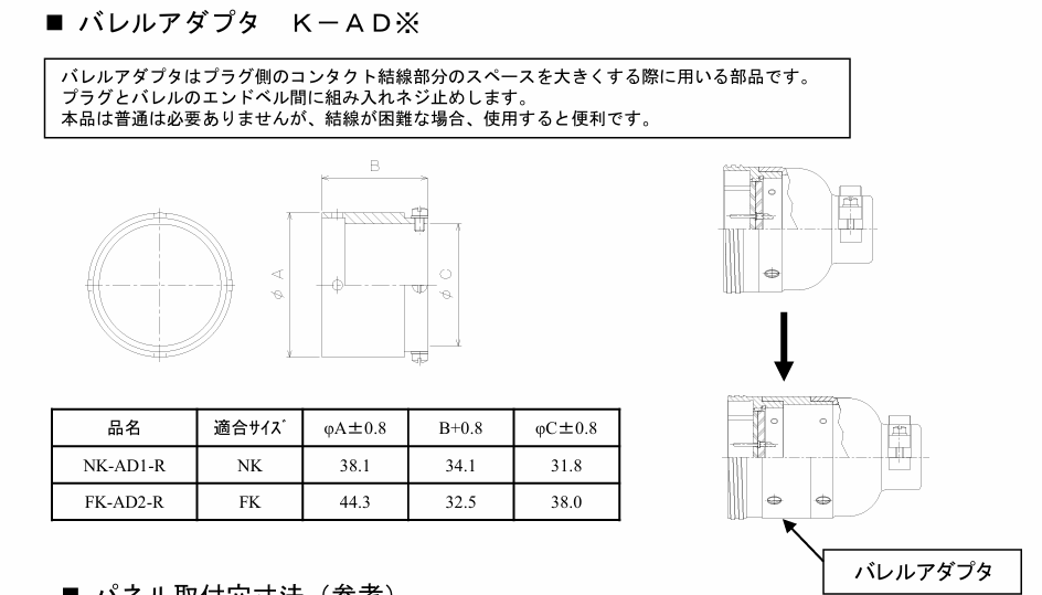 ・丸型マルチコネクタ(NK、FKシリーズ) ・バレルアダプタ