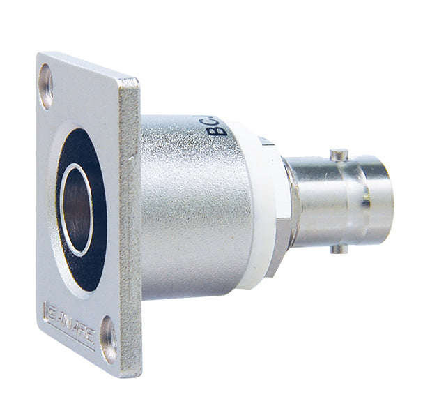 ・75ΩBNC型リセプタクル パネル取付フランジタイプ(埋込) ・12G-SDI対応 ・フランジサイズ:ITTキャノン製 XLR-F77 ・仕様:中継タイプ BNC (メス) - BNC (メス)